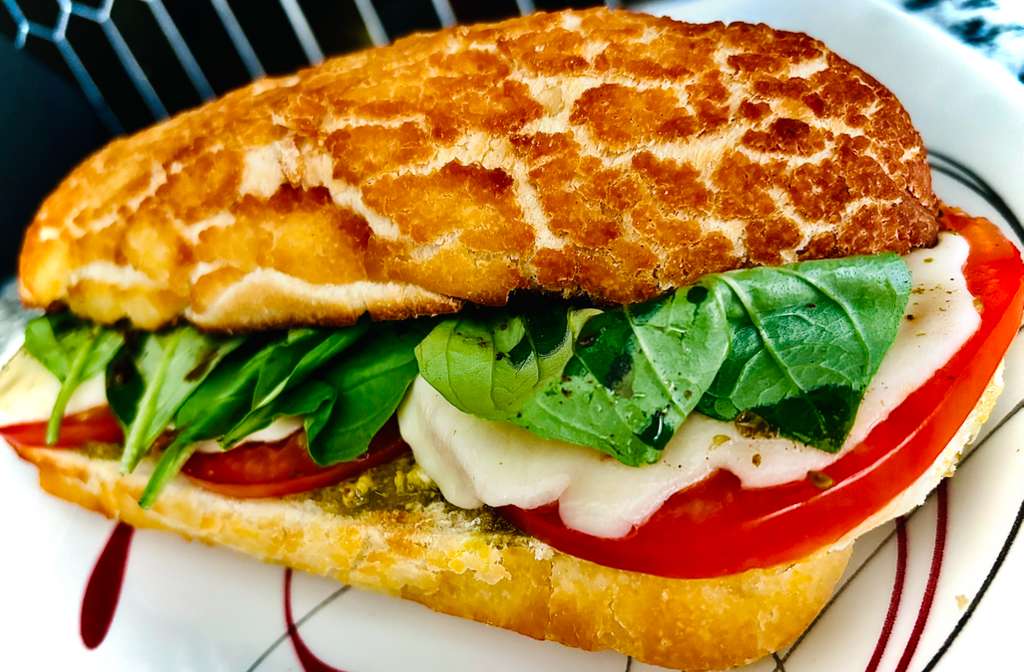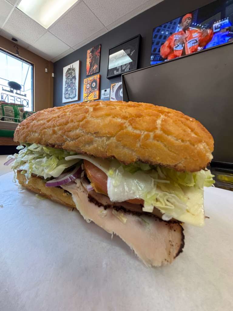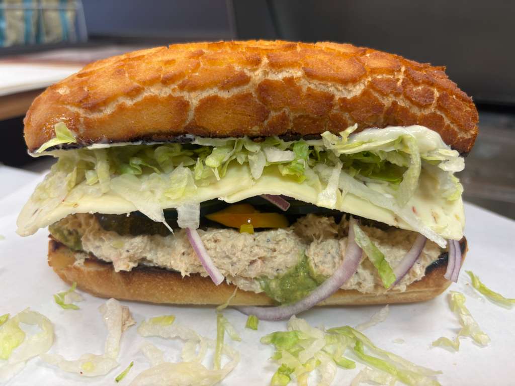 sandwiches include: tomato, lettuce, cucumber, pickles, spicy pickles, Banan pepers, jalapeno, black olives, bell pepper, red onions, mustard & mayo Make it “HELLA saucy” add Our mouthwatering, full of taste & flavor garlic/pesto based sauce
